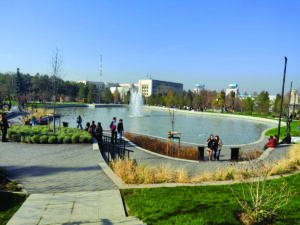 2010г. Центральный фонтан в парке имени “Первого Президента Республики Казахстан”, г. Актобе Комплекс плавающих фонтанов реки Сазды в г. Актобе